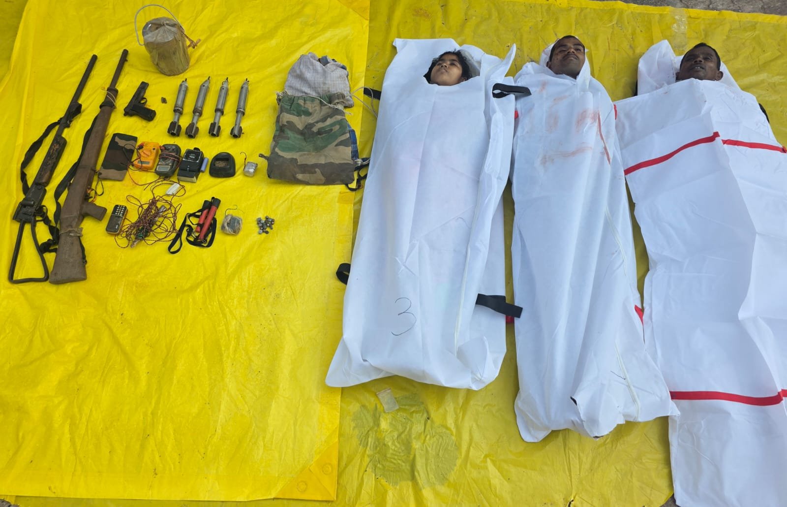 गोलीबारी खत्म होने के बाद मुठभेड़ स्थल से एक महिला सहित तीन नक्सलियों के शव और हथियार बरामद किए गए।