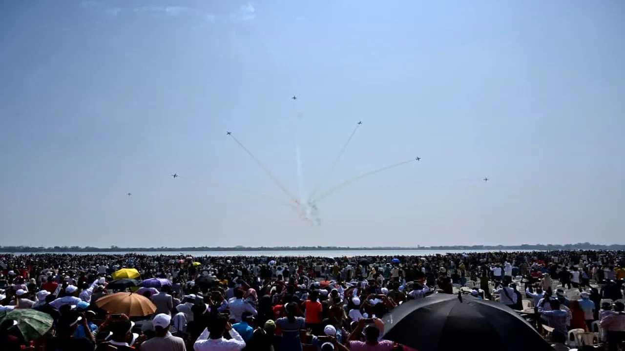 हजारों दर्शक, जिनमें उपराष्ट्रपति सी.पी. राधाकृष्णन, राज्यपाल रमेन डेका, मुख्यमंत्री विष्णु देव साय और विधानसभा अध्यक्ष रमन सिंह शामिल थे, लड़ाकू पायलटों की कौशल और सटीकता देखकर मंत्रमुग्ध हो गए।