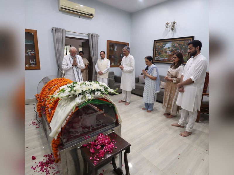 नई दिल्ली। प्रधानमंत्री नरेंद्र मोदी ने मंगलवार को भारतीय जनता पार्टी (भाजपा) के वरिष्ठ नेता और दिल्ली भाजपा के पहले अध्यक्ष प्रोफेसर विजय कुमार मल्होत्रा के घर जाकर श्रद्धाजंलि अर्पित की।